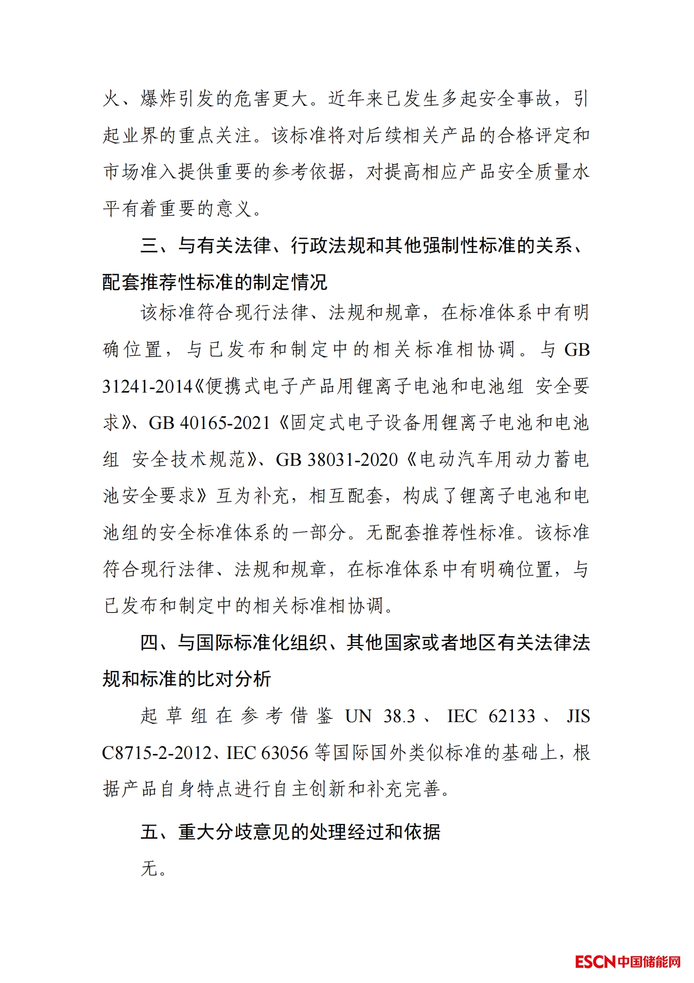 公开征求对《电能存储系统用锂蓄电池和电池组安全要求》等3项强制性国家标准(征求意见稿)的意见