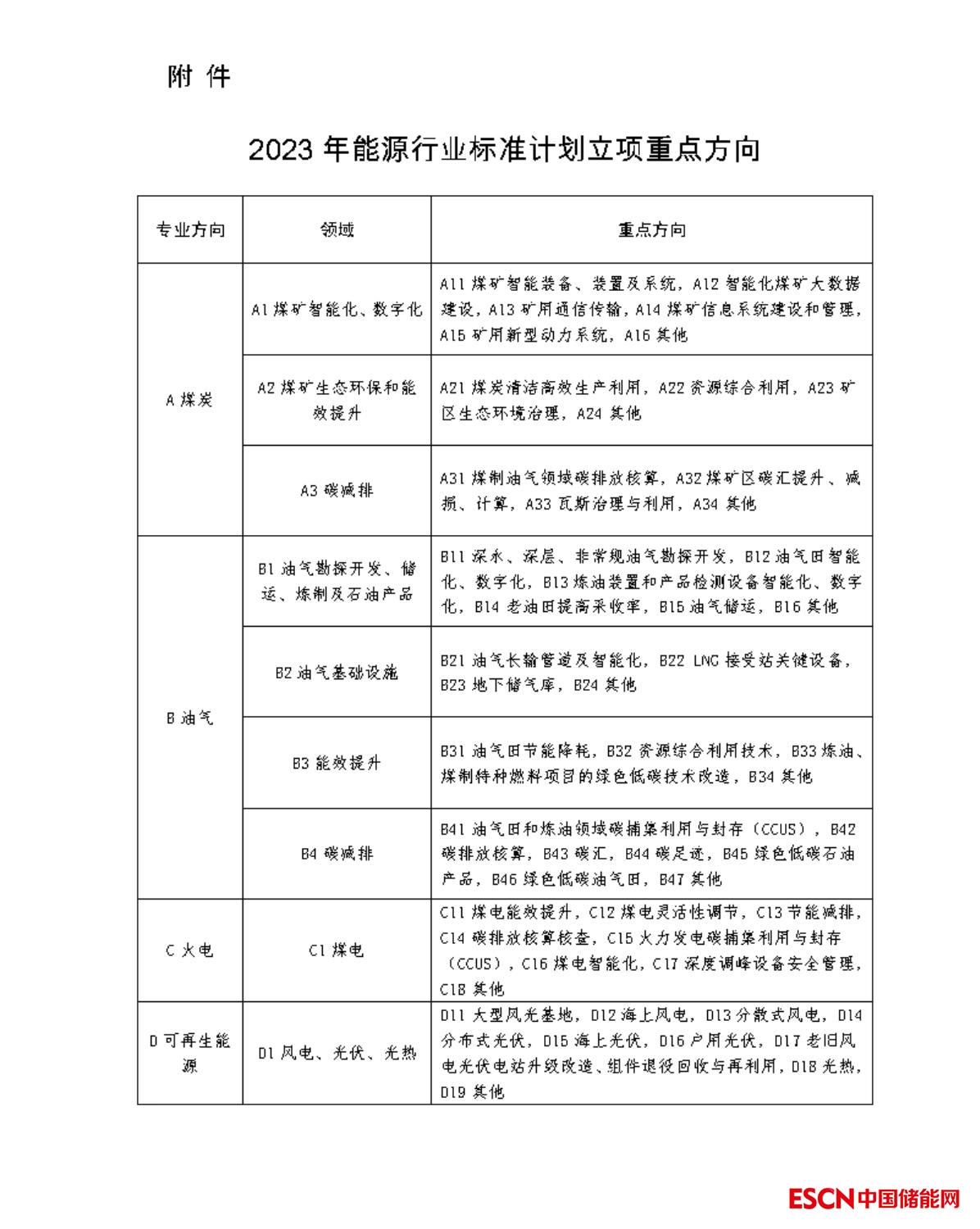 中国储能网讯:3月15日,国家能源局综合司发布关于印发《2023年能源行业标准计划立项指南》的通知。《指南》表示,能源行业标准计划的提出要以本领域的标准体系为指导,坚持急用先行、先进适用、协调一致的原则,优先健全能源新兴领域标准,完善提升传统领域标准。