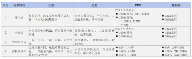储能系统根据电力传输技术路线分为低压升压技术(包括集中式、组串式、智能组串式、集散式、分布式能源块等)和高压级联技术两种。基于以上分类,储能系统高压化发展趋势也可以分为两条路线。