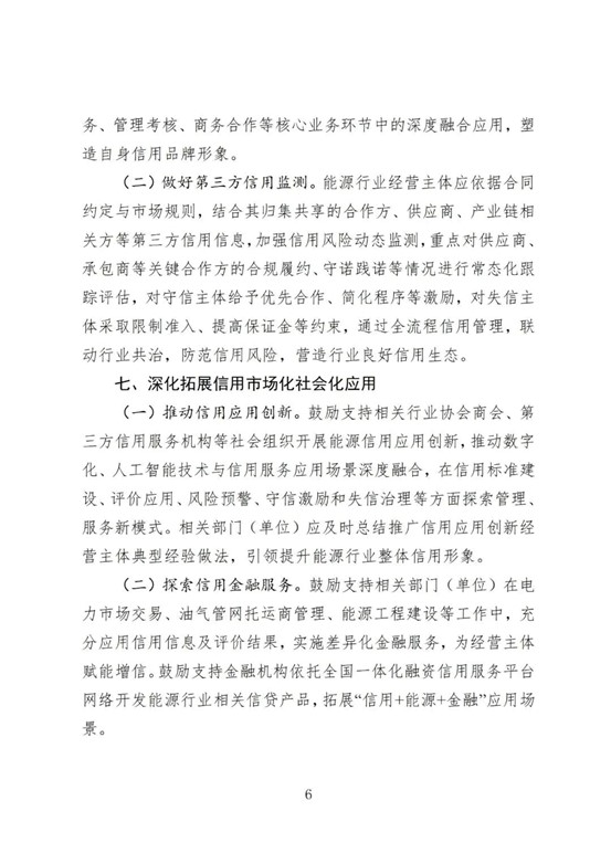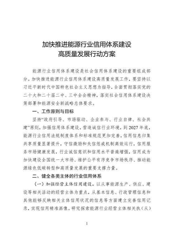 《方案》明确,到2027年底,能源行业将建成一套更加完善的信用法规制度体系和标准规范,实现信用信息归集共享质量的显著提升,并建立起高效运行的守信激励和失信惩戒机制。同时,信用服务市场将健康发展,全行业诚信意识和信用水平普遍增强,最终使信用成为加快建设全国统一大市场、维护公平有序竞争市场秩序、推动能源绿色低碳转型和高质量发展的重要支撑力量。