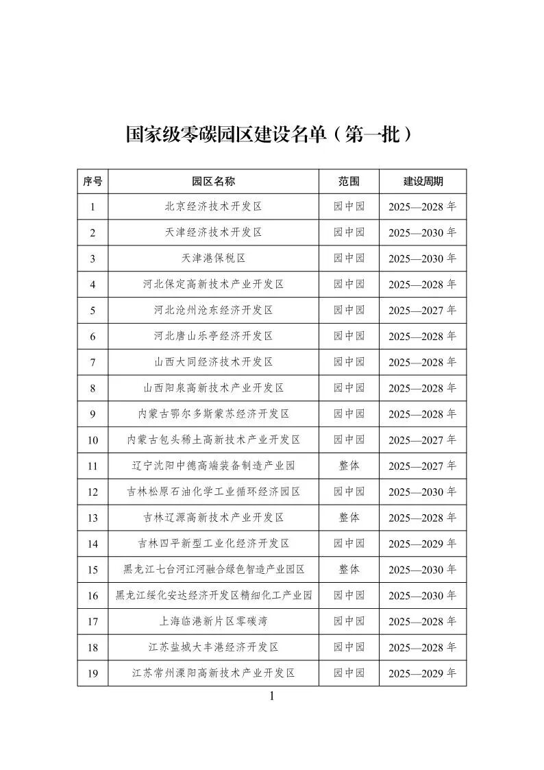 按照《国家发展改革委 工业和信息化部 国家能源局关于开展零碳园区建设的通知》(发改环资〔2025〕910号)要求,经园区申报、地方推荐、专家评审、部门会商等程序,确定了国家级零碳园区建设名单(第一批),共纳入52个园区。现予公布,并就有关事项通知如下:
