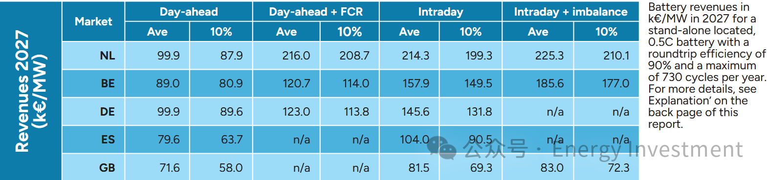 英国市场预期收益相对较低,日内叠加不平衡策略下约83.0千欧元/兆瓦。这一水平部分受制于英国电力市场与欧洲大陆的物理隔离,价格传导机制有限。