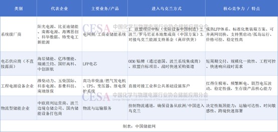从实际出口结构看,已经进入乌克兰的中国储能企业,大致分为四类,第一类是阳光电源、比亚迪储能、科华数据、南都电源、海博思创、特变电工新能源等系统级厂商(电网侧/工商业侧),这些企业主要通过欧盟项目中标(实际设备来自中国),波兰、罗马尼亚本地集成商(背后系统是中国方案),直接对接乌克兰能源支持基金(离岸供货)这三种路径进入乌克兰。