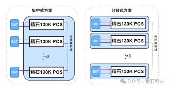 精石科技针对集中式应用,采用网线通信,实现多设备集中部署;分散式应用,采用光纤通讯,打破了距离限制,大幅降低了通讯干扰,可实现多设备分散式部署。搭载DSP全数字化控制技术,实现多模块精准协同,确保并机系统功率均分均衡,能量双向流动无缝衔接,同时具备优异的离网电压/频率(V/F)稳定控制能力,可精准匹配离网场景下各类负载的供电需求,完美适配工商储离网备用、偏远地区独立供电等场景。